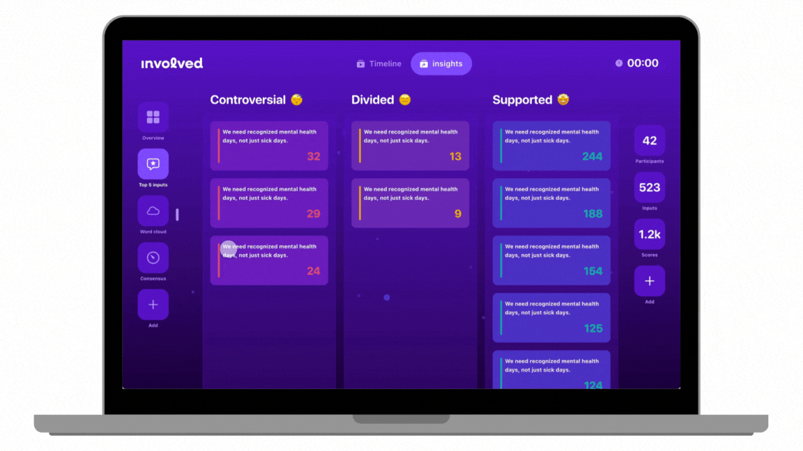Involveds algoritme giver alle idéer og udsagn lige mulighed for at blive hørt, så de bedste indsigter stiger til tops.